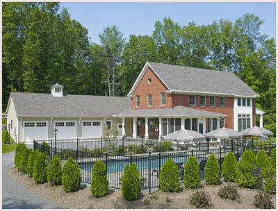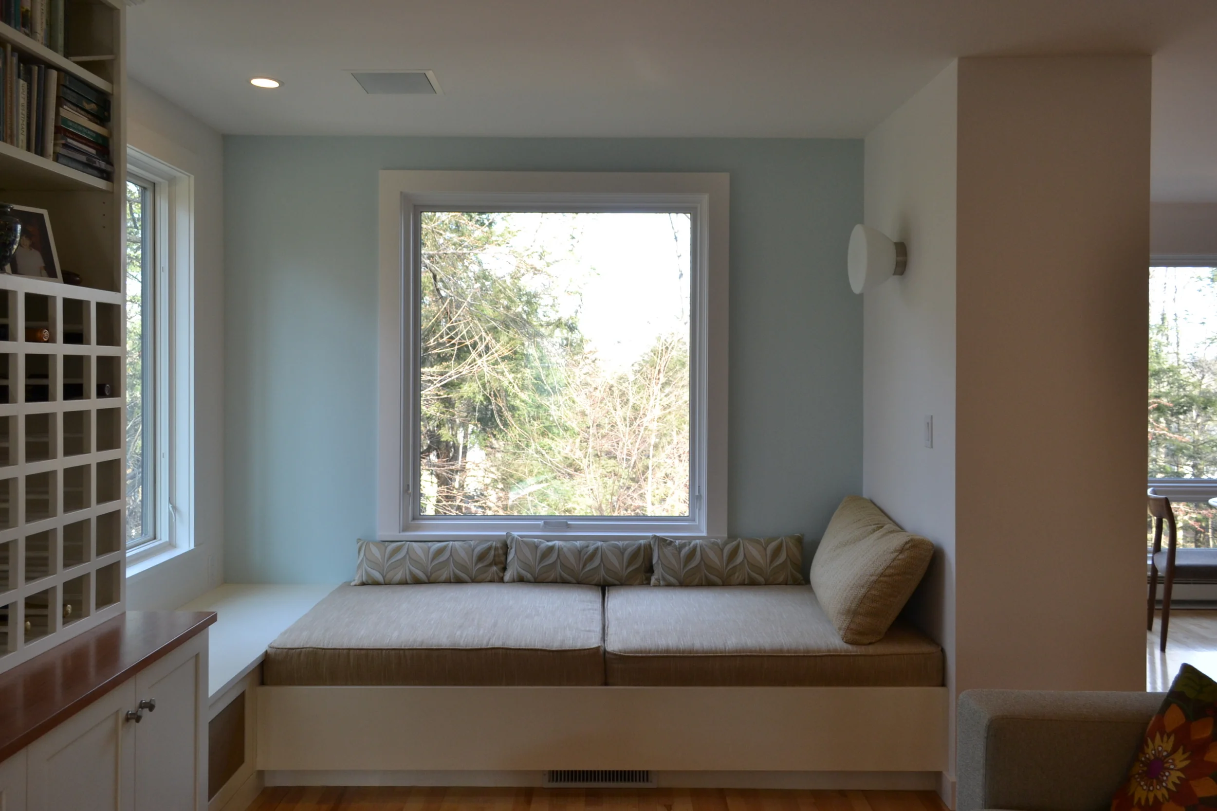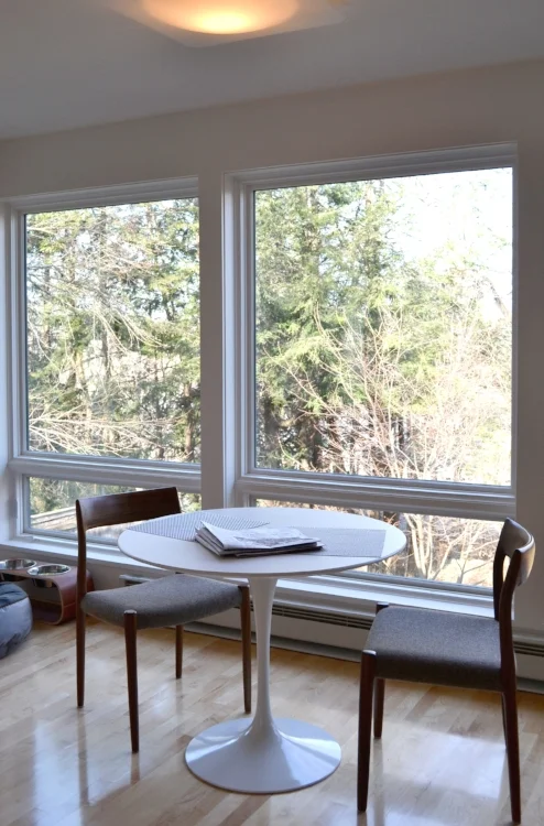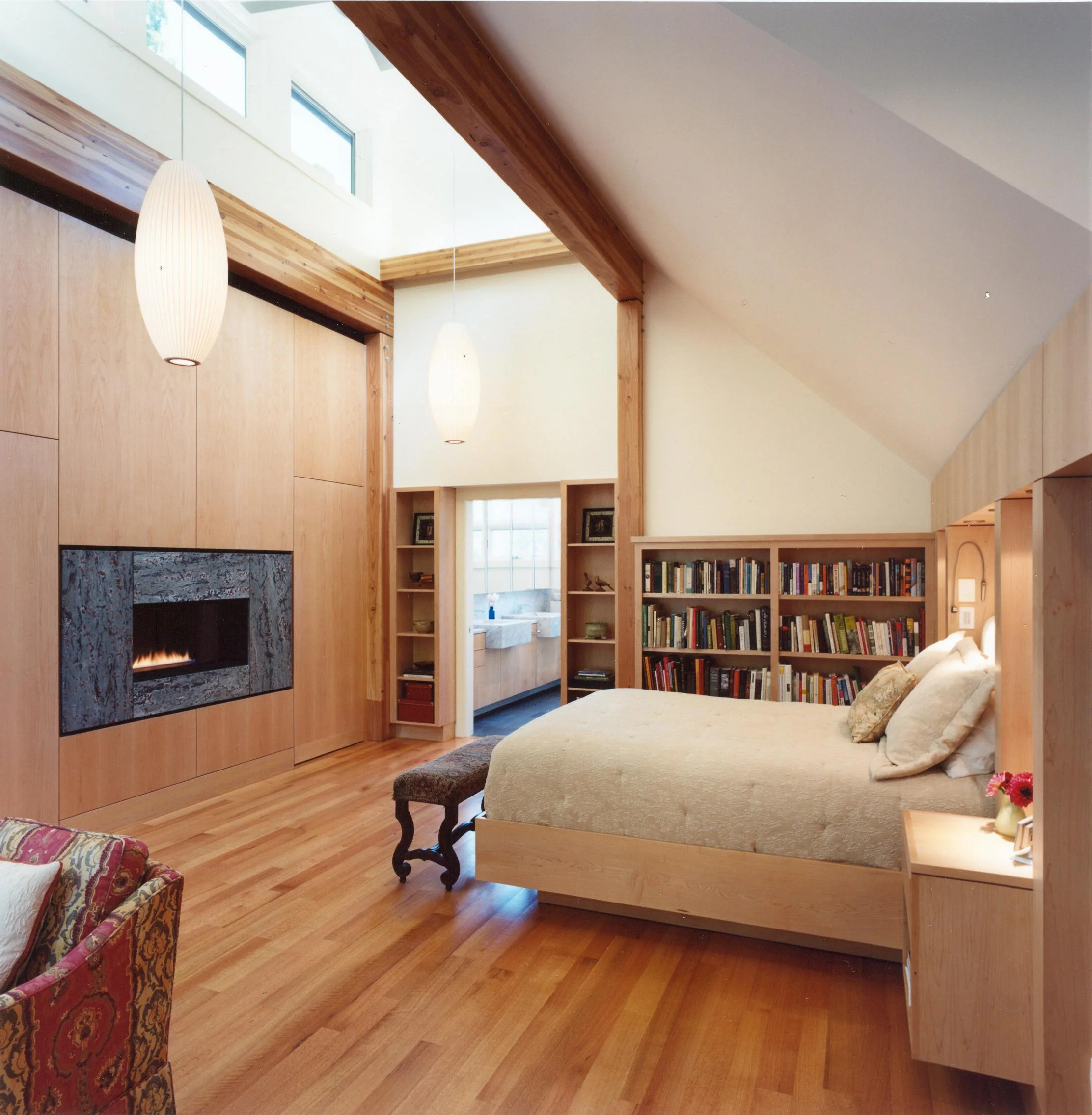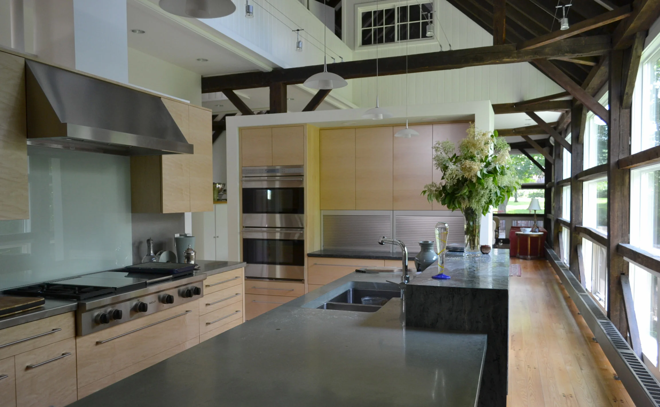 New construction on a Northampton wooded hillside. Single floor living with studio workspaces below.
